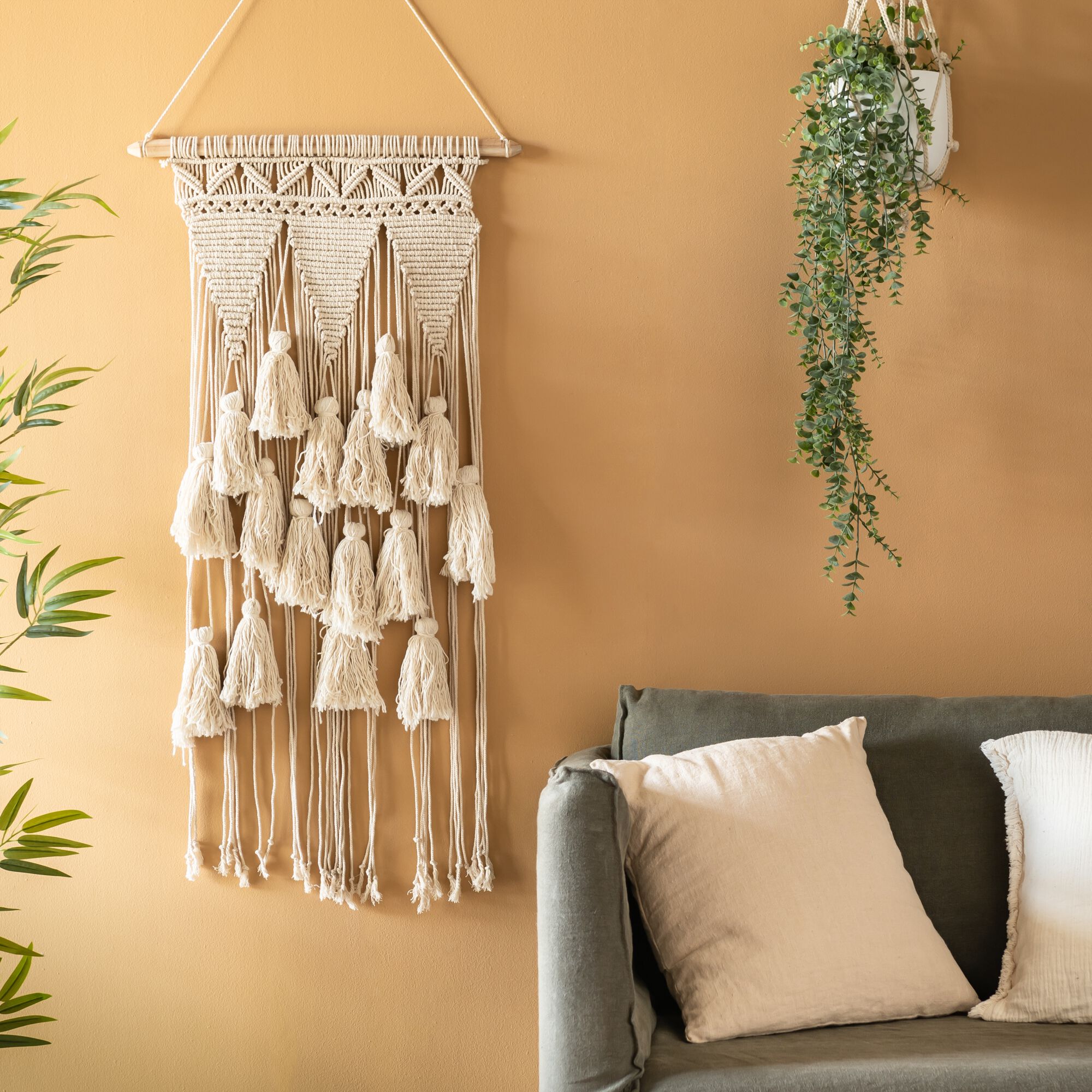 MACRAME - Décoration murale en coton - blanc L40xl90cm