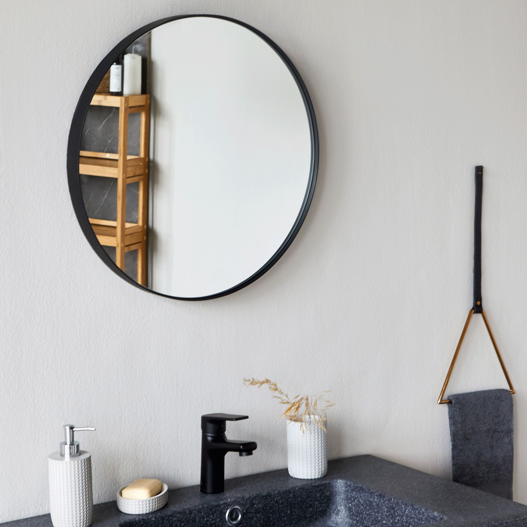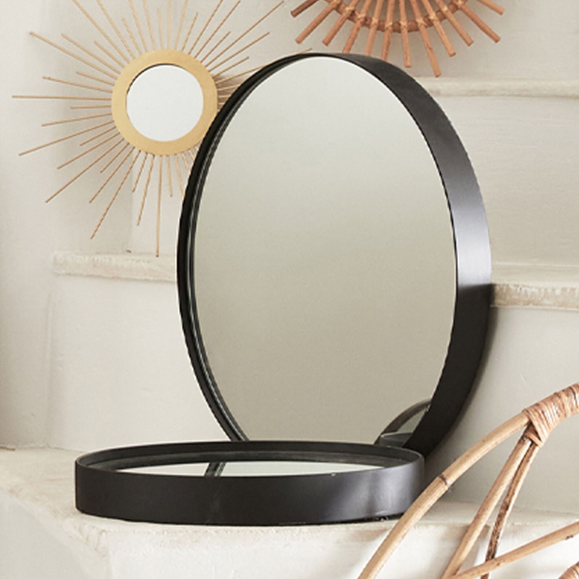 OUNDO - Miroir rond en bois D50cm - noir