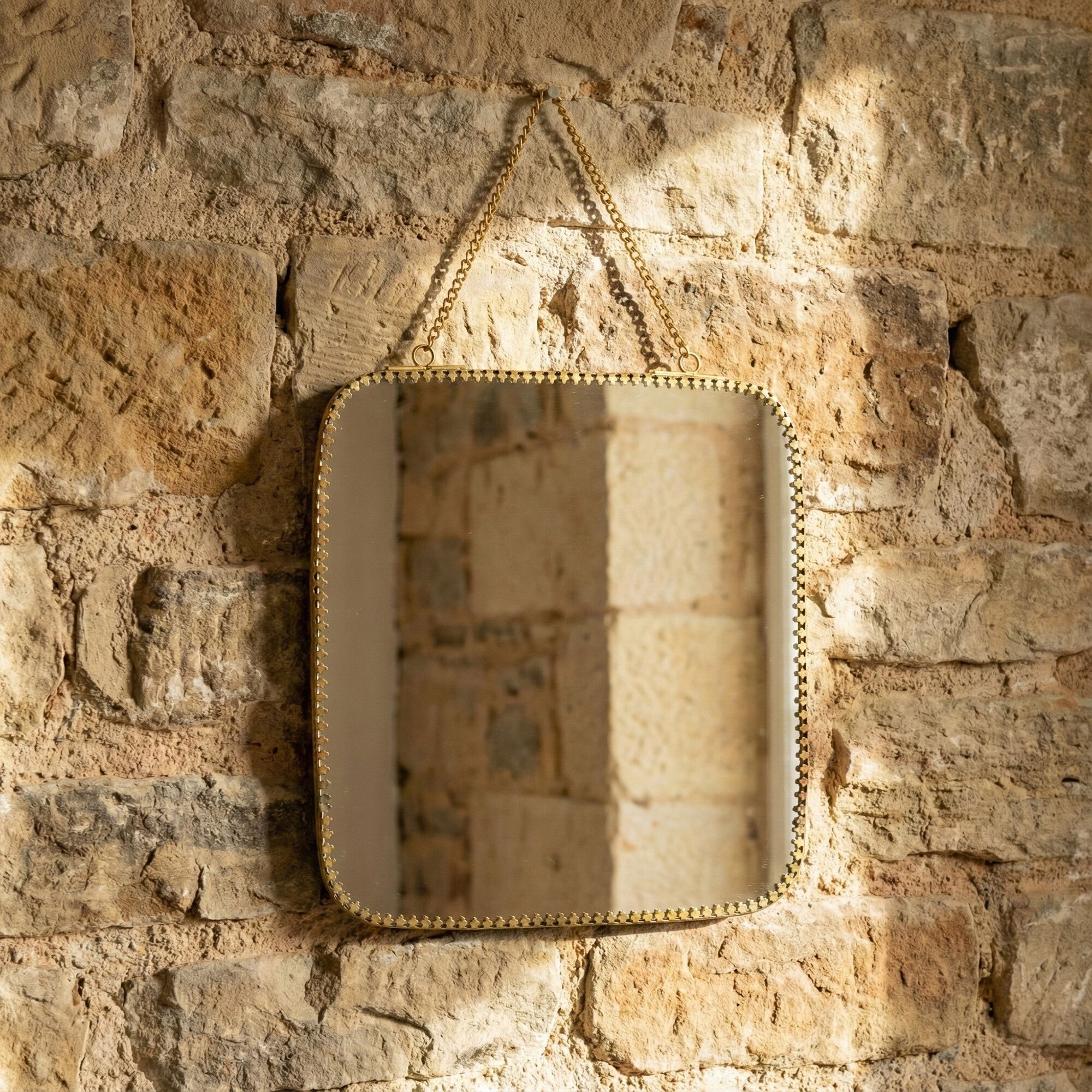RITA - Miroir mural rectangulaire en laiton 21x20,5cm - doré