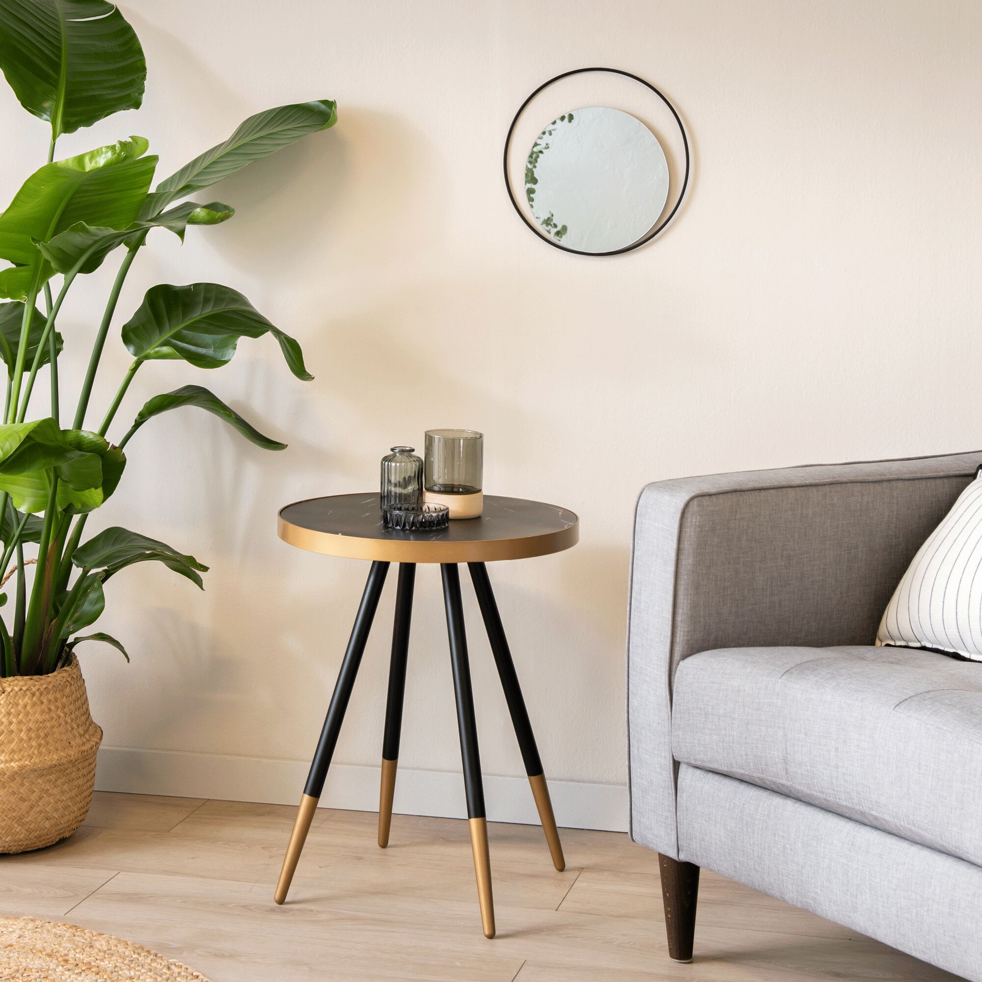 ROMY - Miroir graphique rond en métal noir D30cm