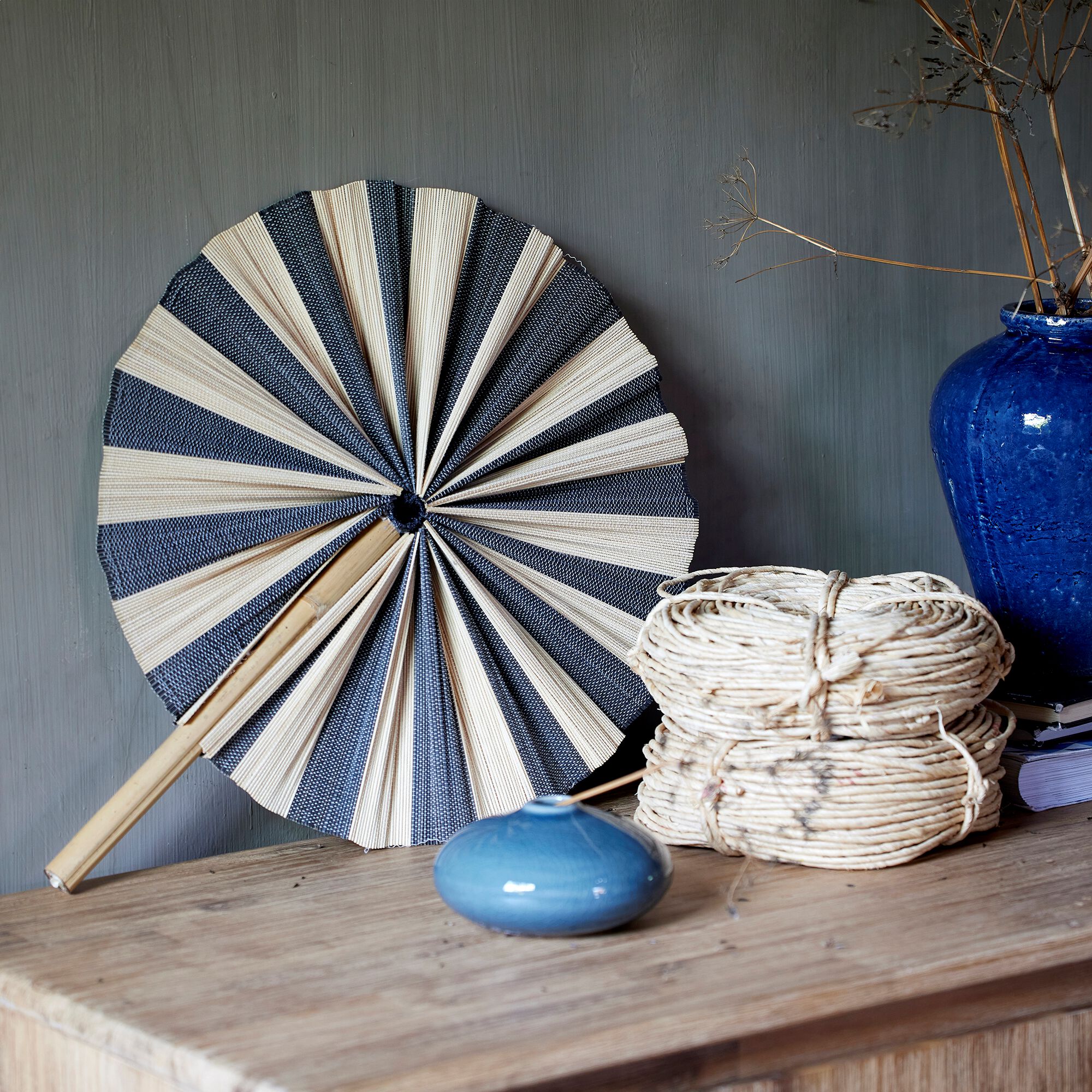 FIRMIN - Déco murale éventail en bambou D39cm - bleu