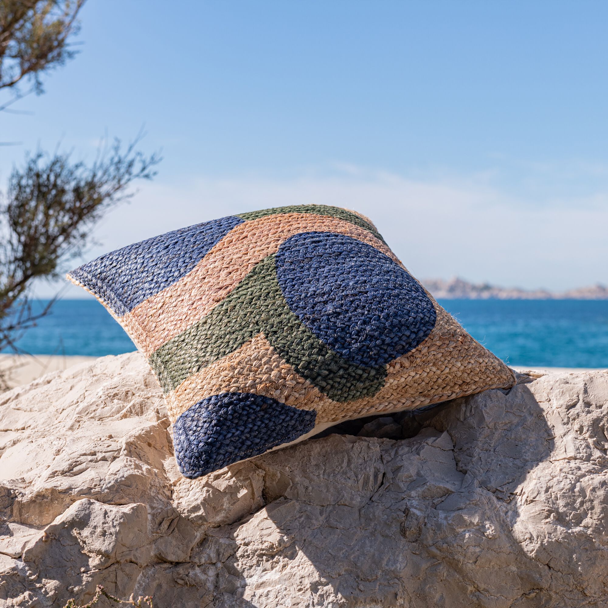 MAYU - Coussin en jute à motif abstrait 45x45cm - naturel