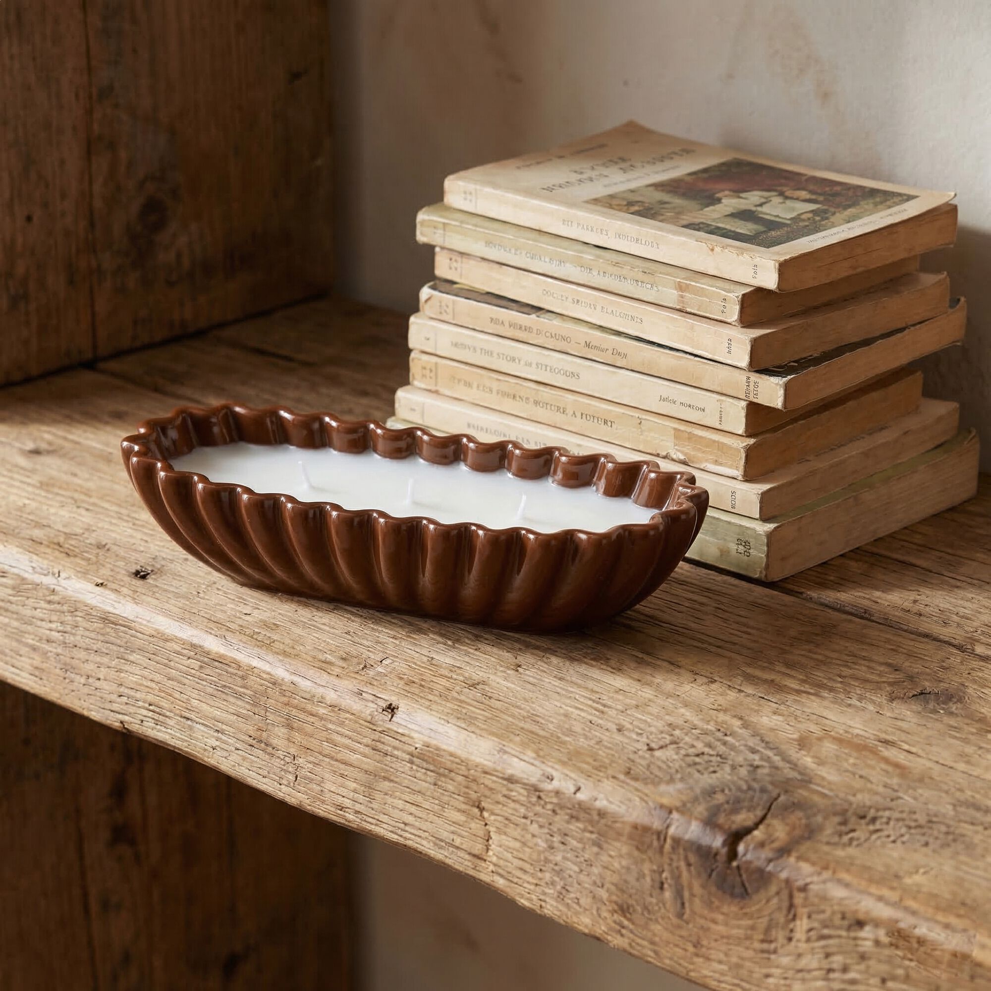 DELYO - Bougie pot en céramique L24,5xH5cm - marron