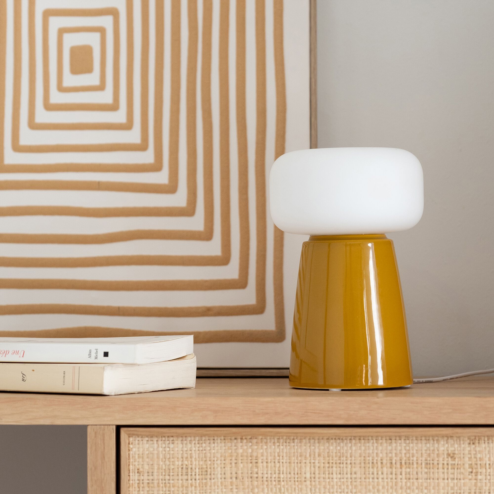 LIDA - Lampe à poser électrifiée en porcelaine - jaune argan