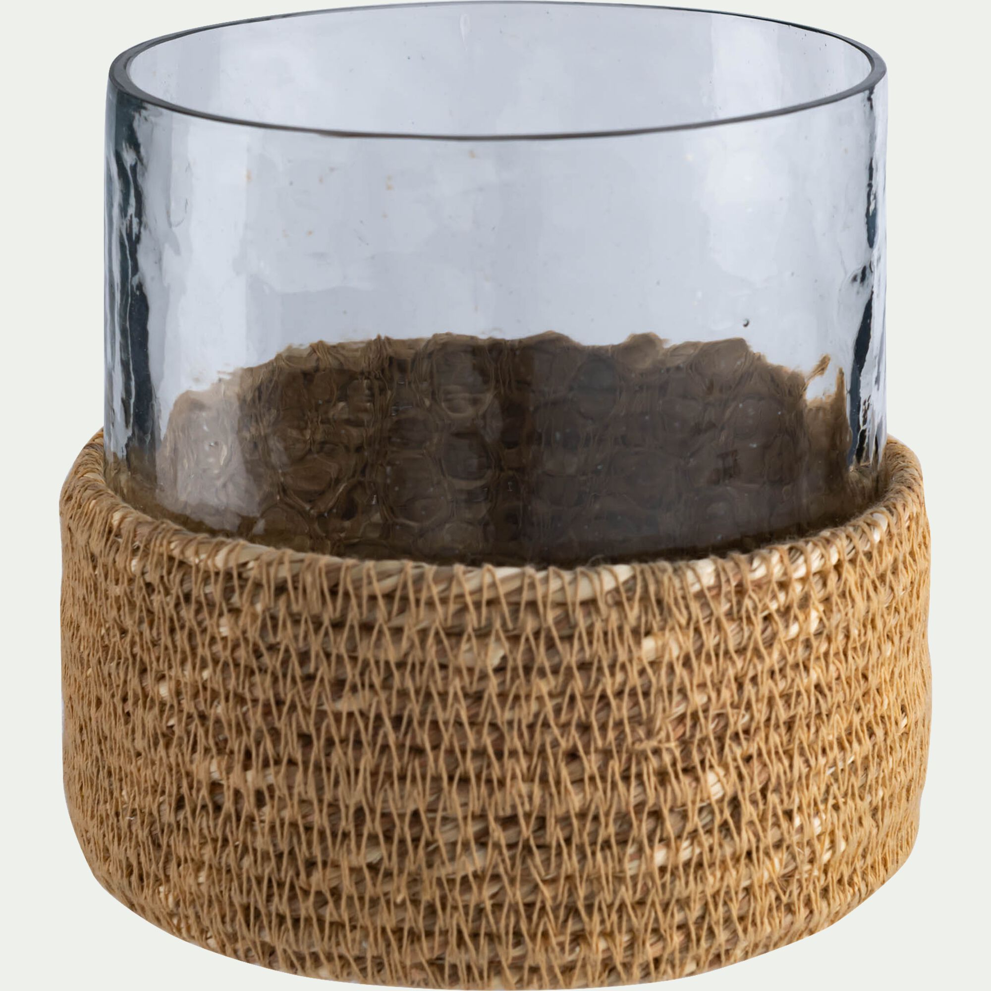 TAYMA - Photophore en verre et jonc de mer D11cm - naturel