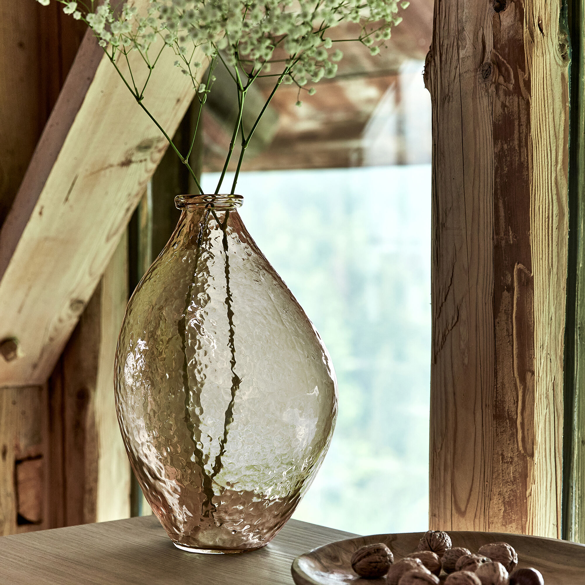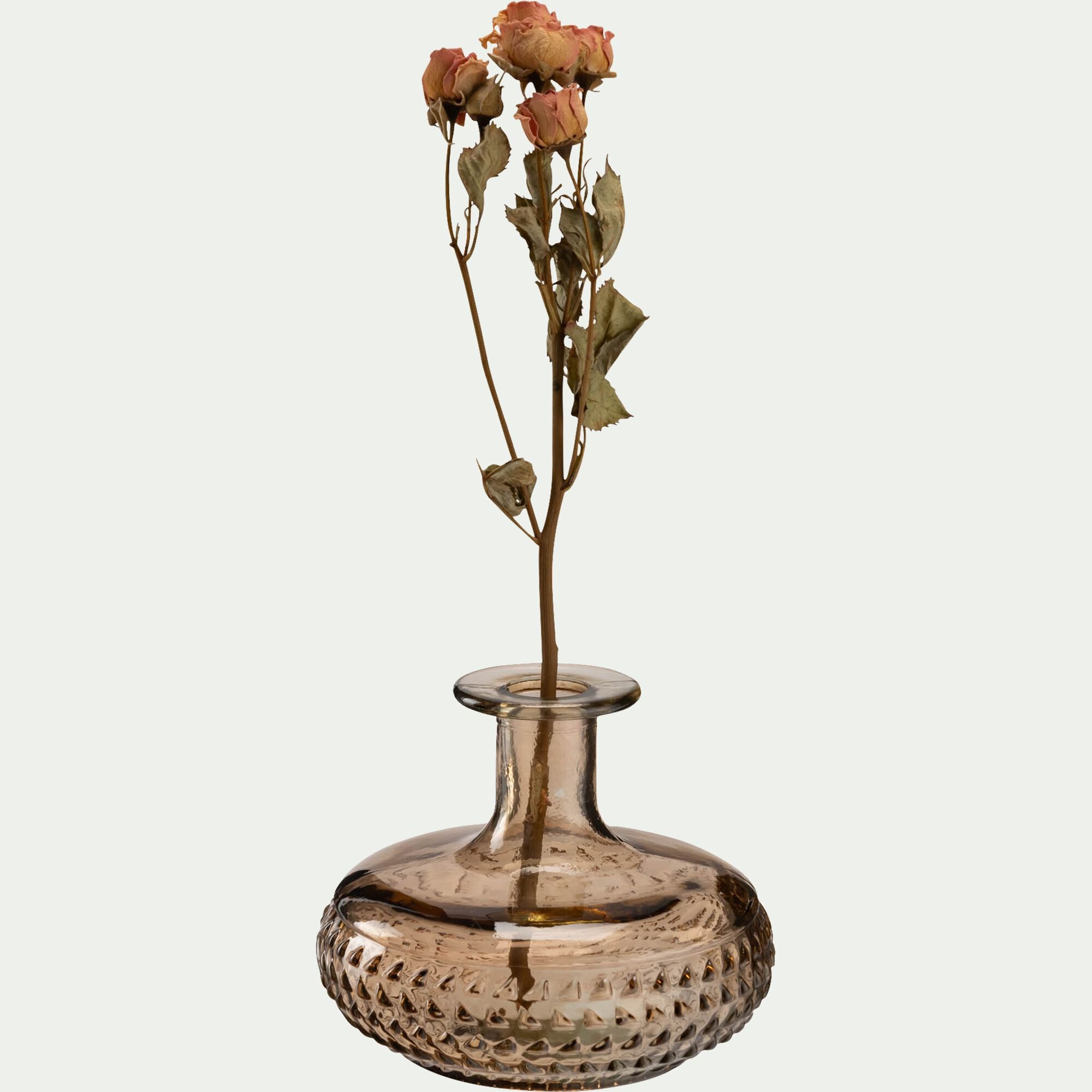 SAUZE - Soliflore en verre à motif H12cm - beige