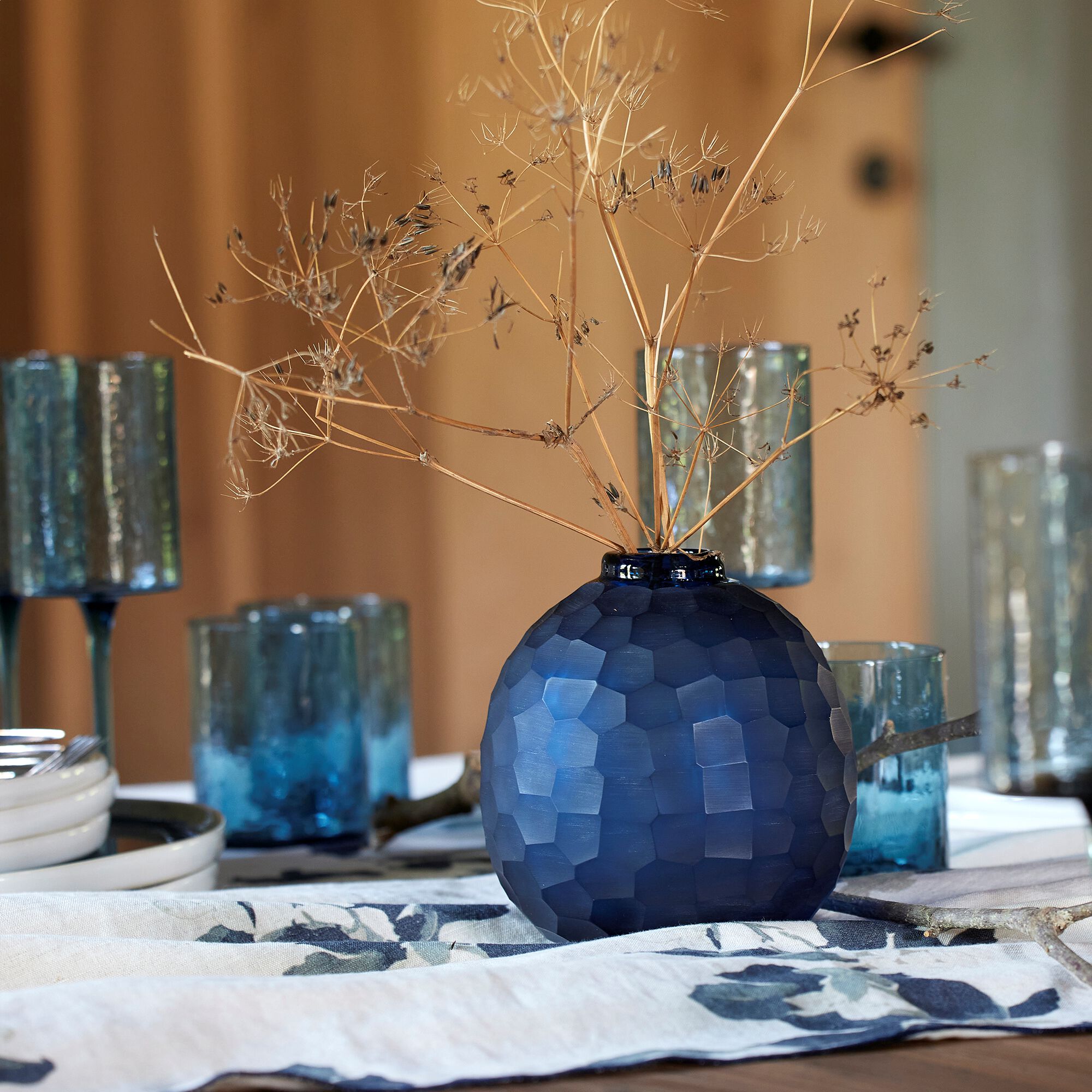 CHALON - Vase boule en verre sodocalcique H15,5cm - bleu