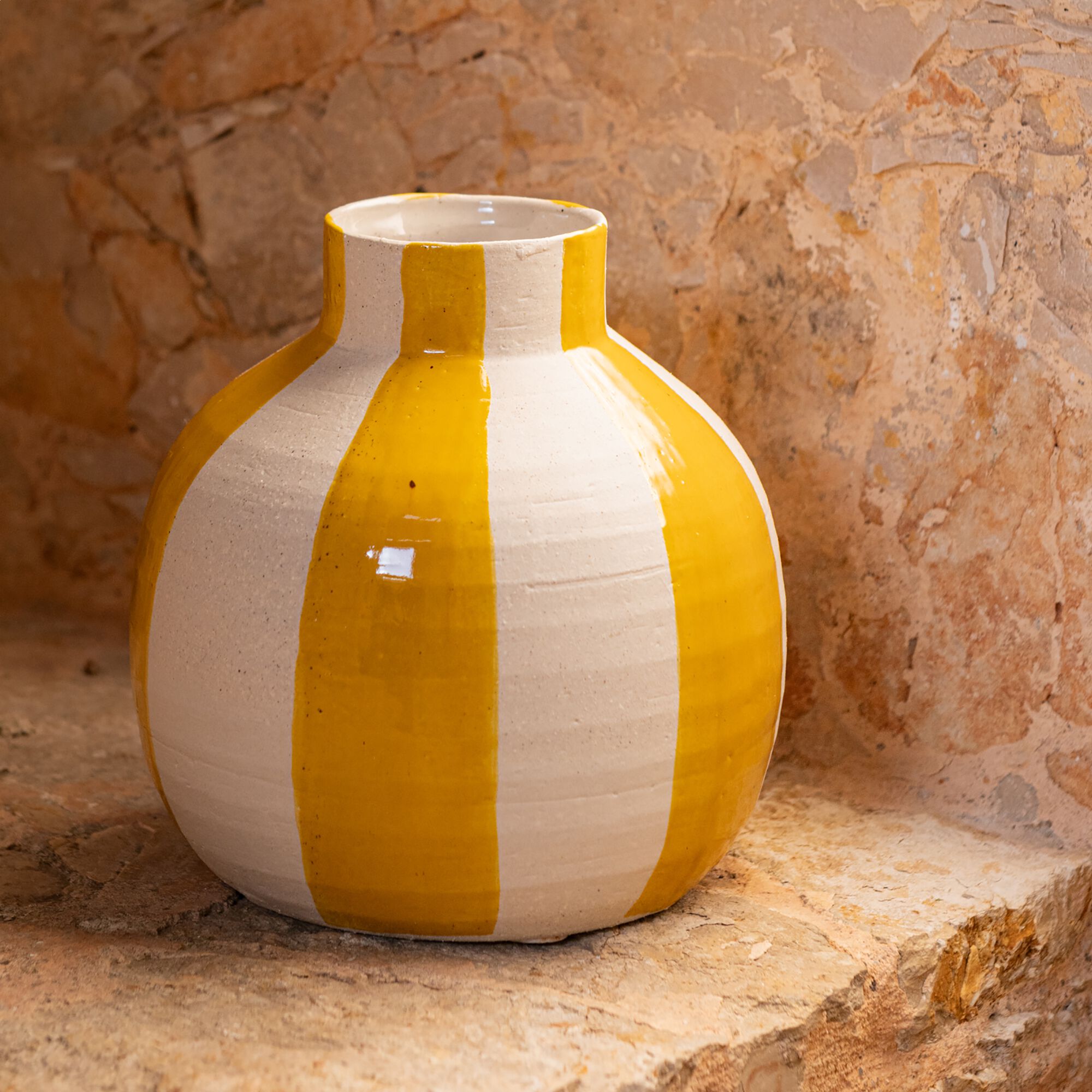 CREST - Vase boule en faïence H15cm - jaune