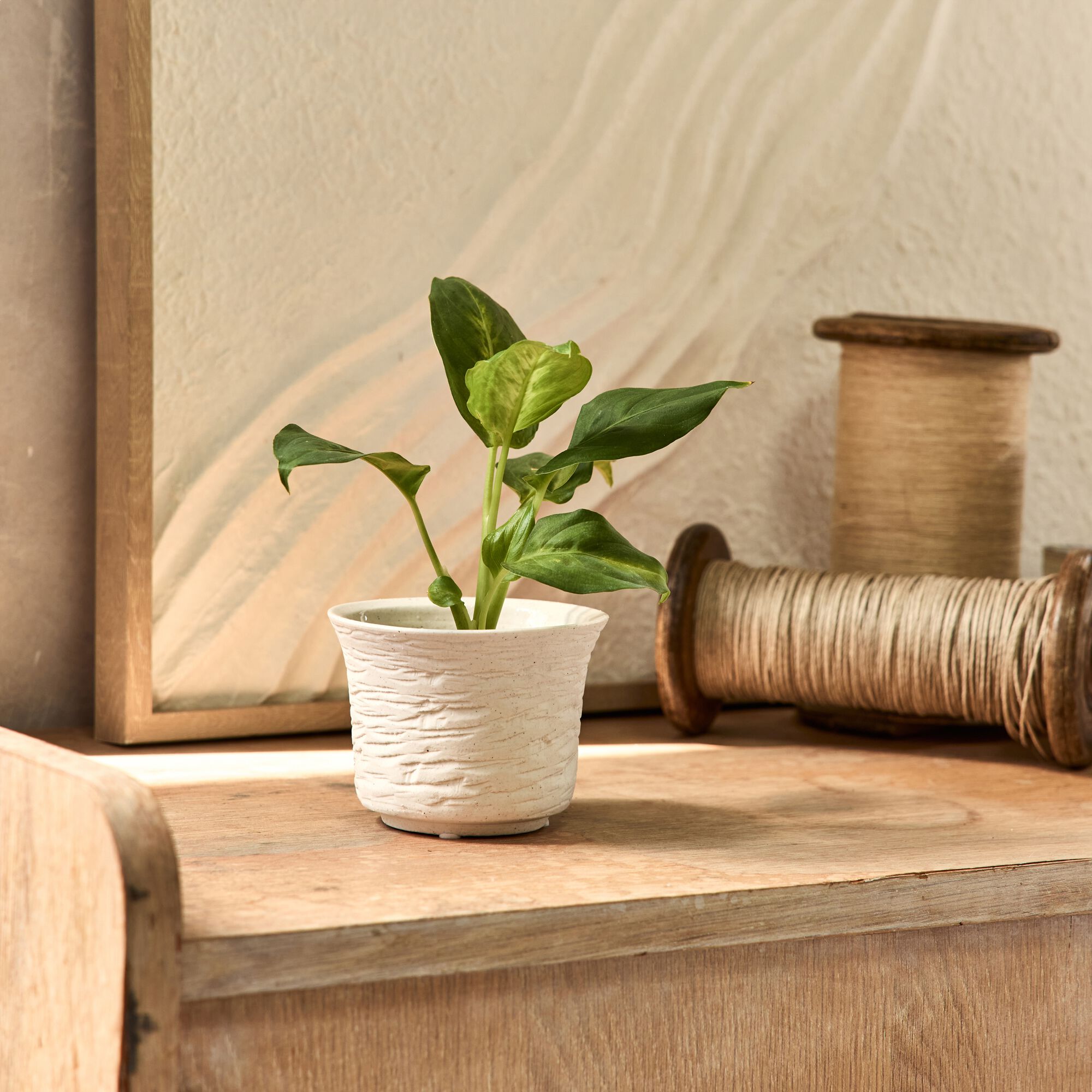 STUDEN - Petit vase en grès strié H7,8cm - blanc