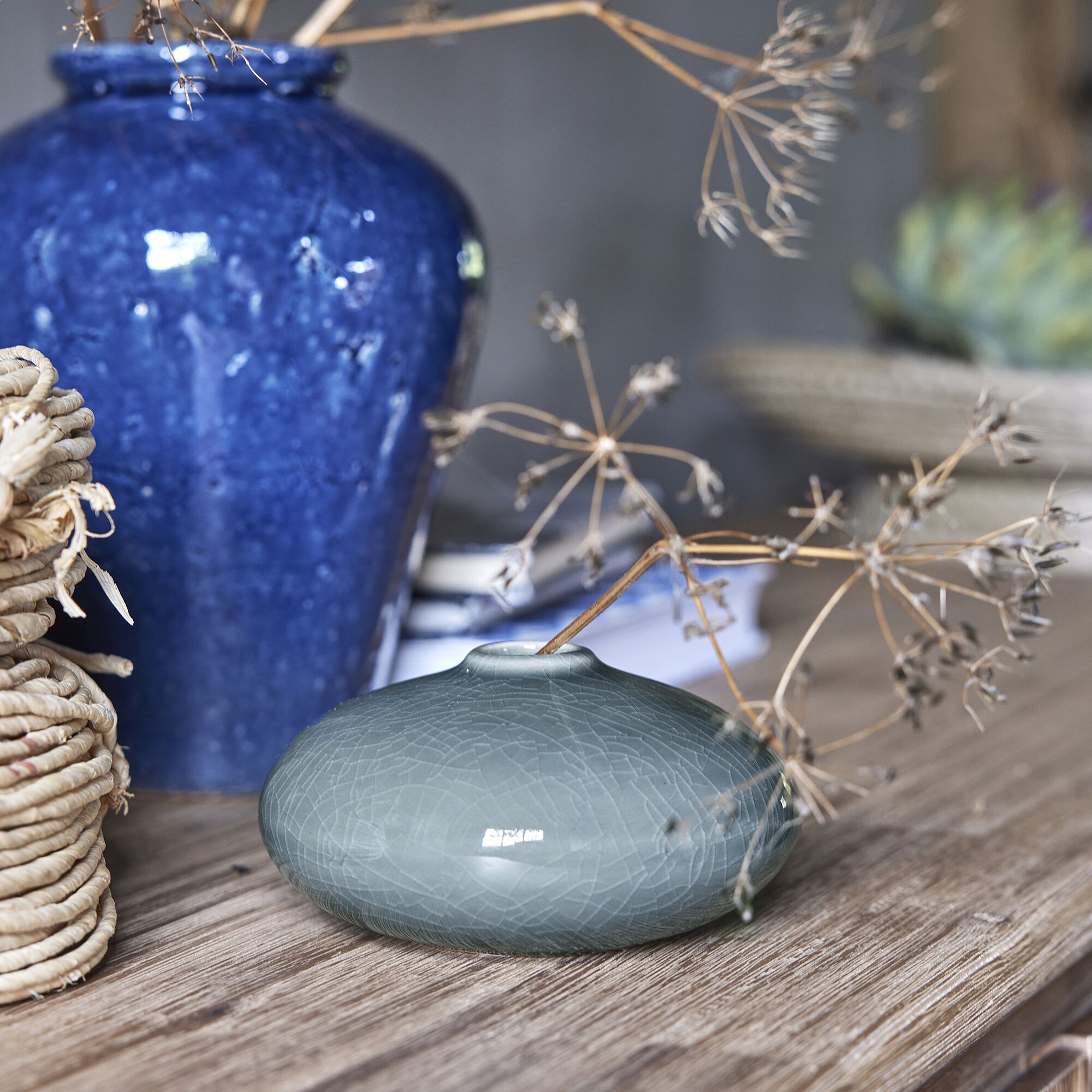 ROVIGO - Petit vase en grès H6,5cm - bleu