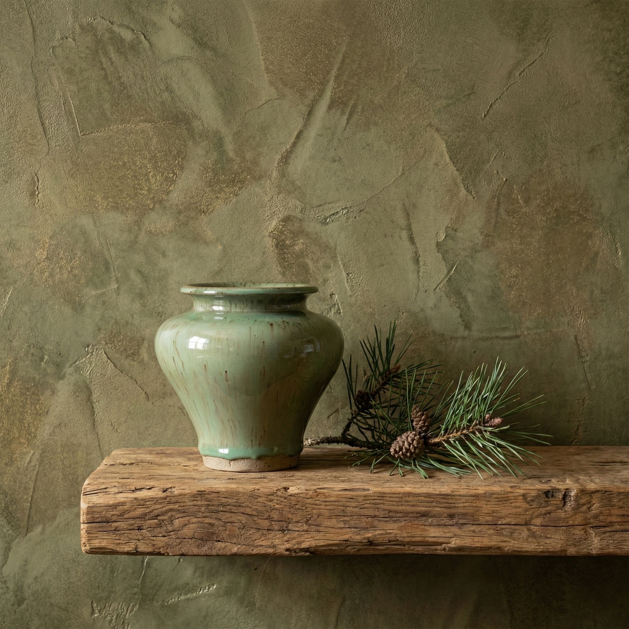 RELLON - Petit vase classique en faïence H8,5cm - vert