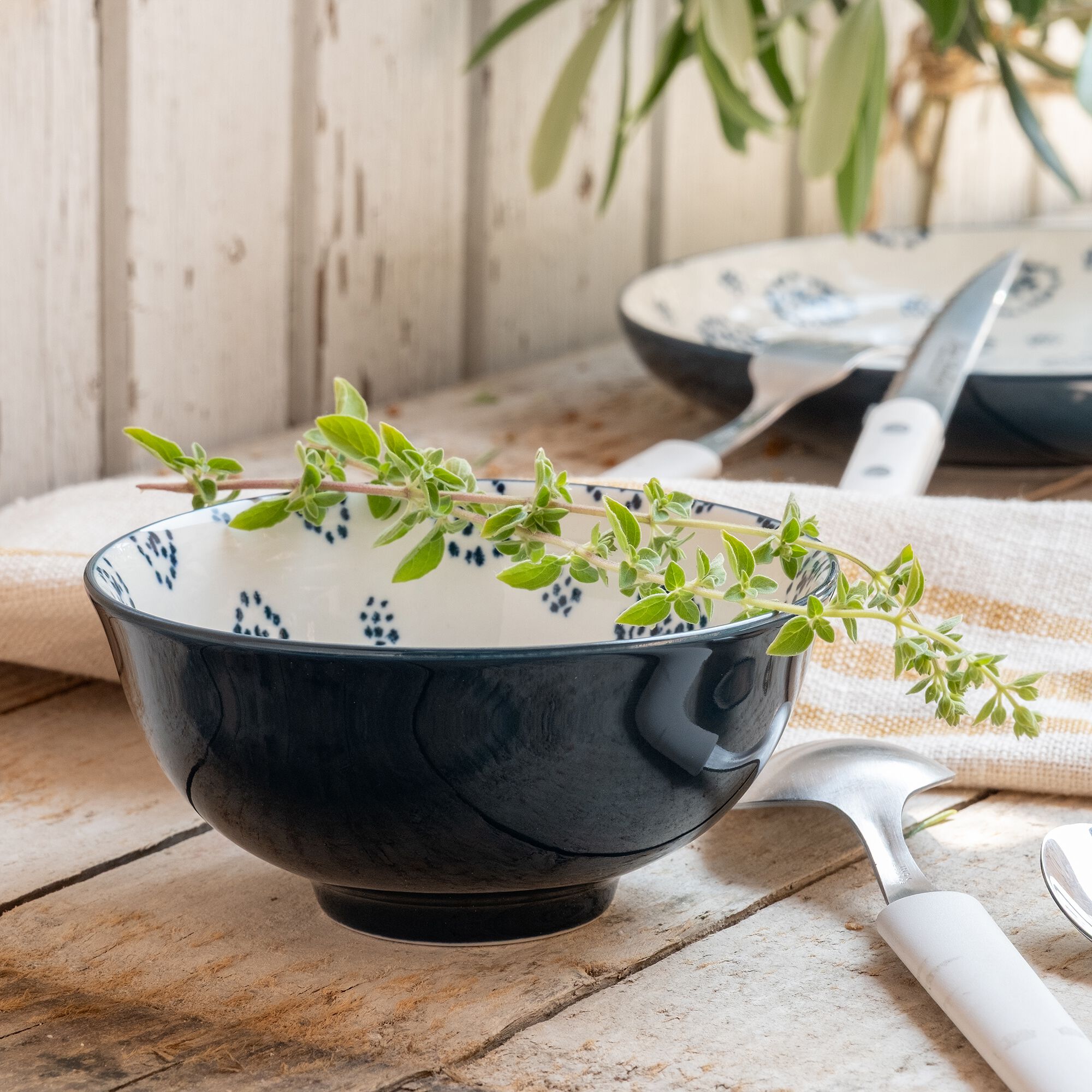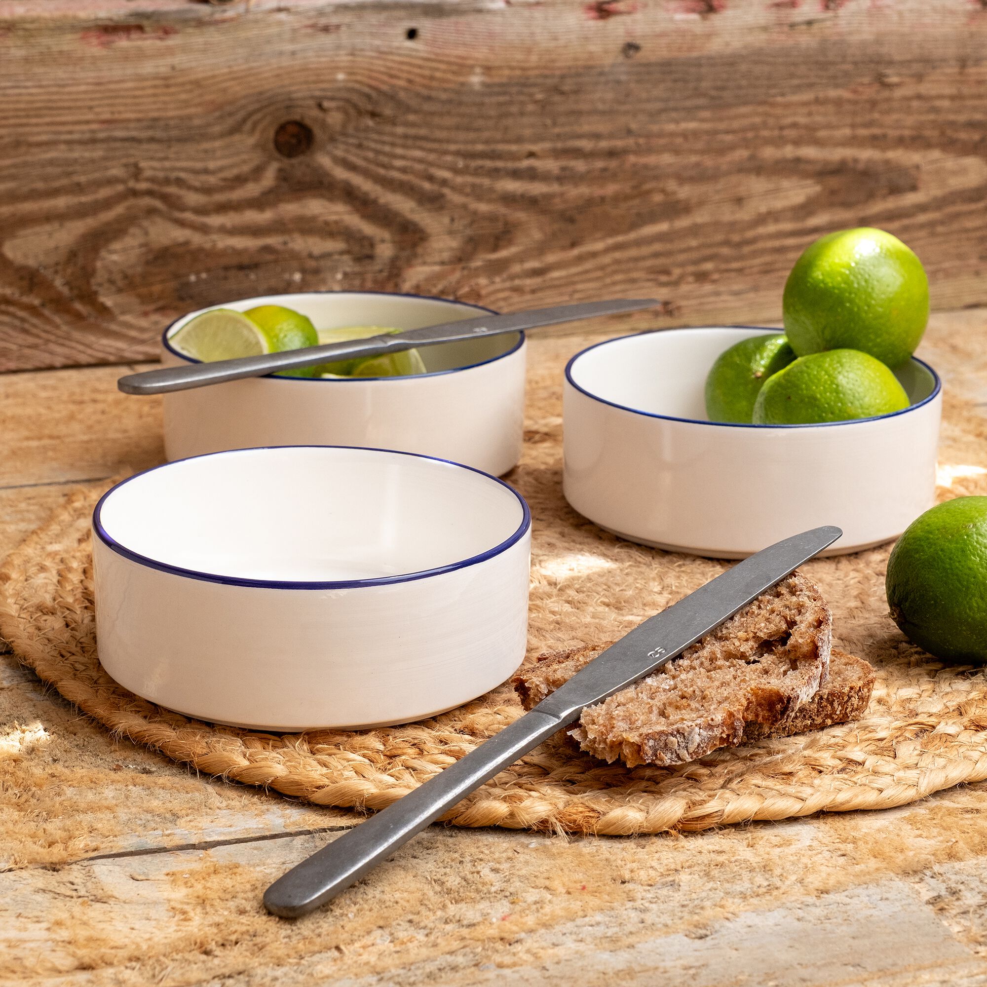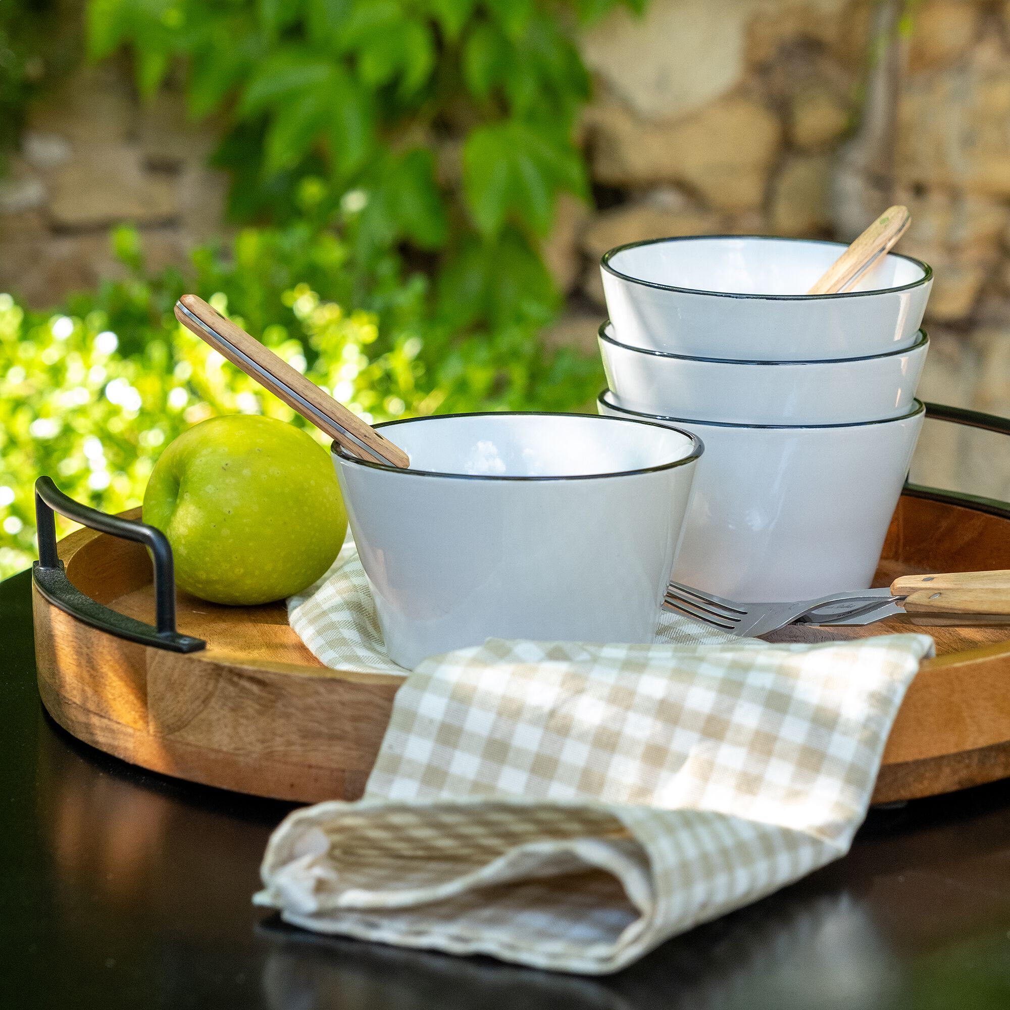 ANNE - Coupelle en grès avec liseré noir D13cm - blanc